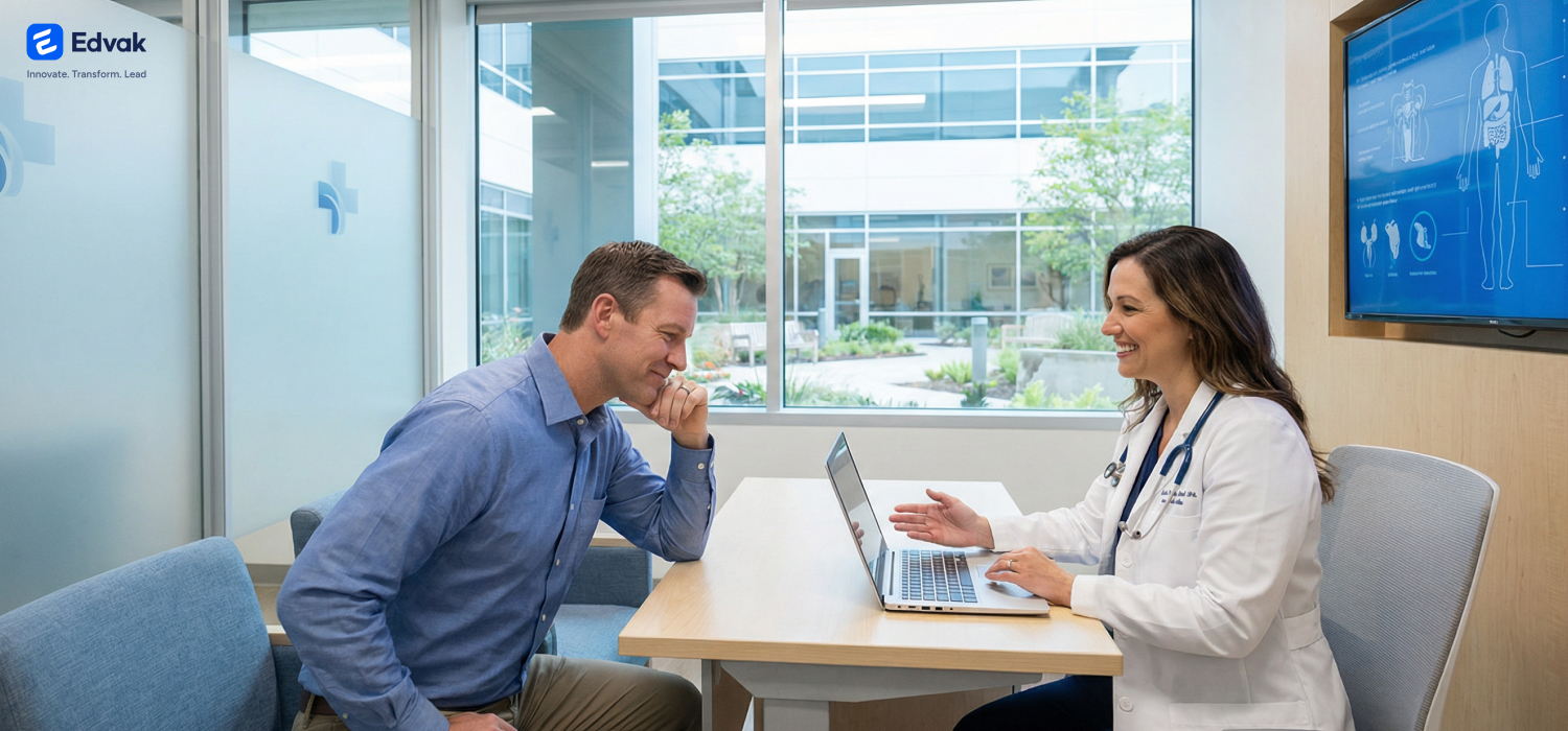 Book a personalized demo with Edvak today. See the AI documentation system in action with scenarios relevant to your internal medicine practice in California.